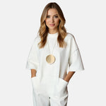 - Rugalmas rövid ujjú szabás, amely könnyen illeszkedik különböző stílusokhoz és alkalmakhoz.