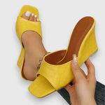 Modern magassarkú szandál négyzetes orral, amely könnyen felvehető és elegáns egyszínű dizájnnal rendelkezik. Ideális sétákhoz vagy különleges alkalmakra.